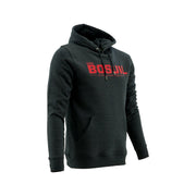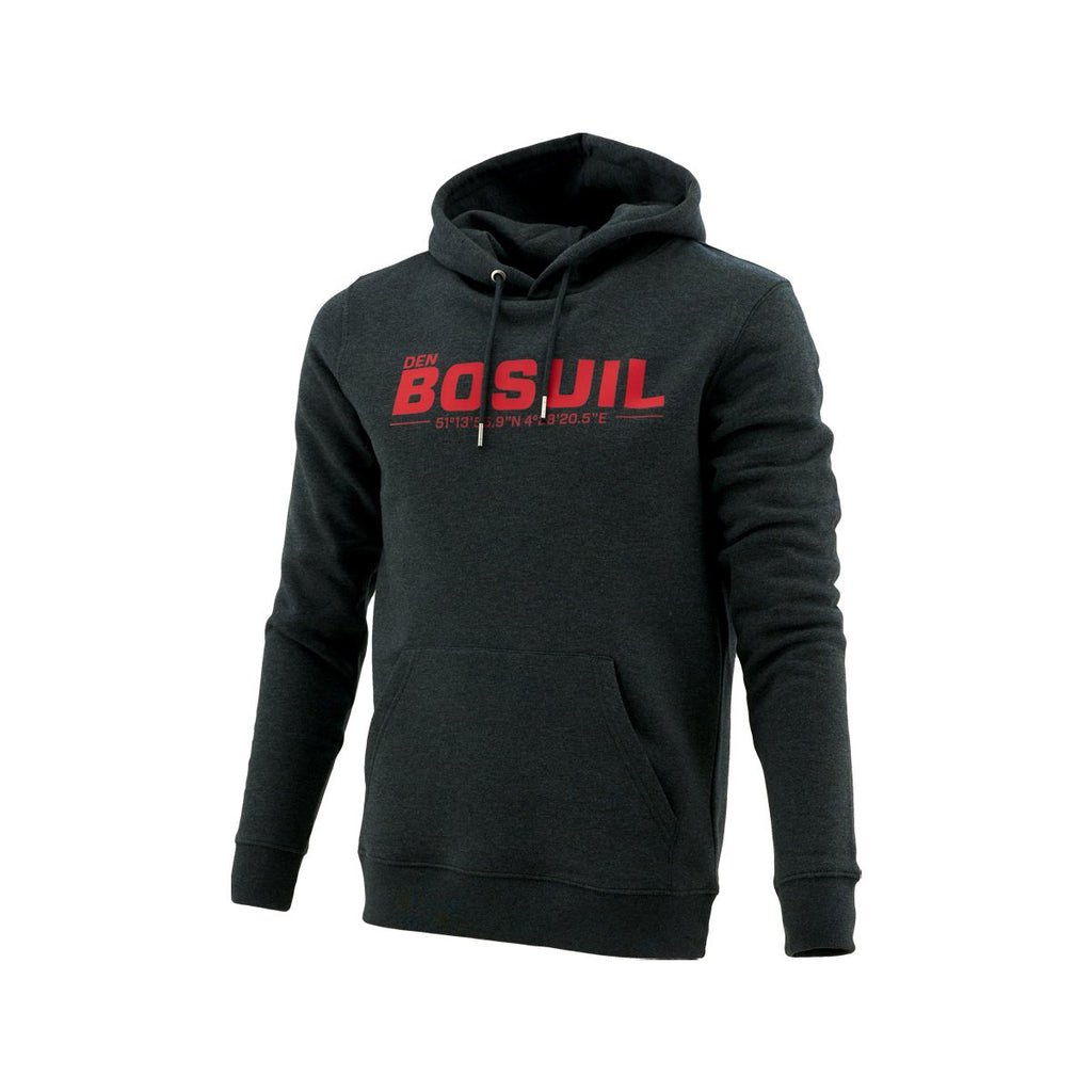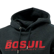 Donkergrijze hoodie, 100% katoen, met DEN BOSUIL geolocatie.