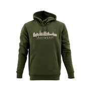 Khaki groene hoodie, 100% katoen, met RAFC Skyline Antwerp.