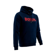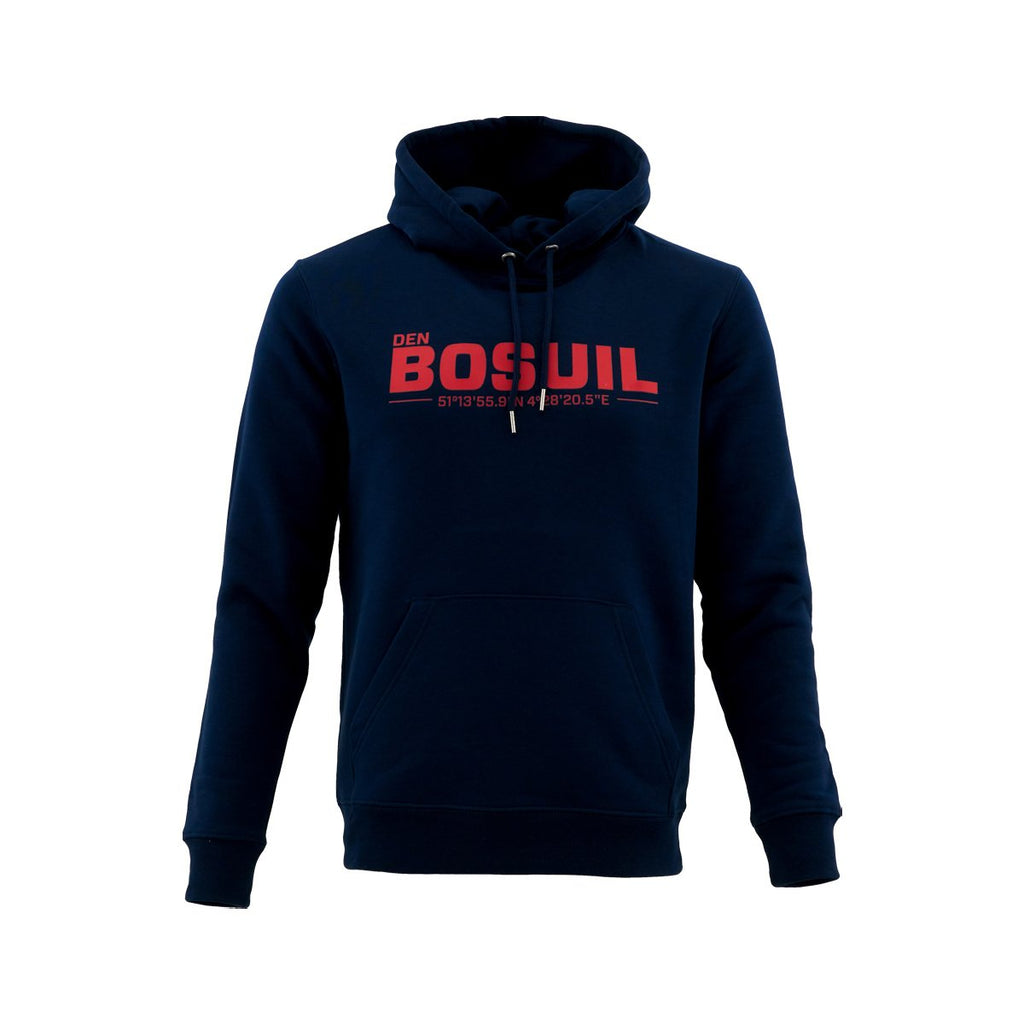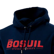 Navy blauwe hoodie, 100% katoen, met DEN BOSUIL geolocatie.
