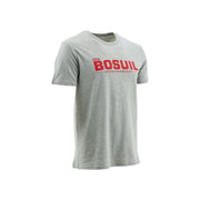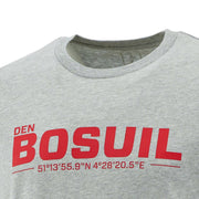 Grijze t-shirt, 100% katoen, met DEN BOSUIL geolocatie.