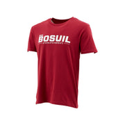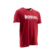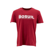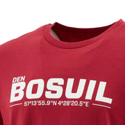 Warm rode t-shirt, 100% katoen, met DEN BOSUIL geolocatie.
